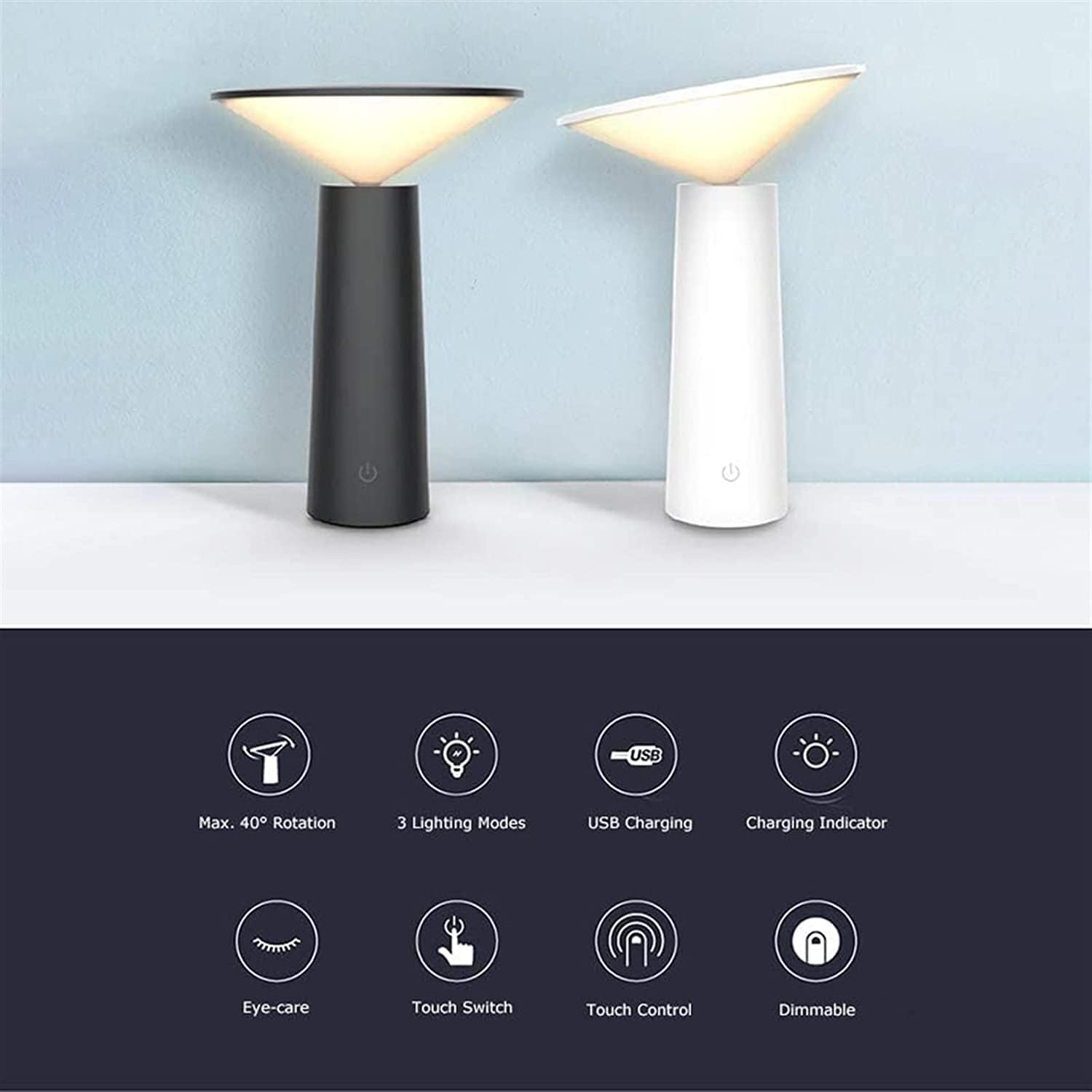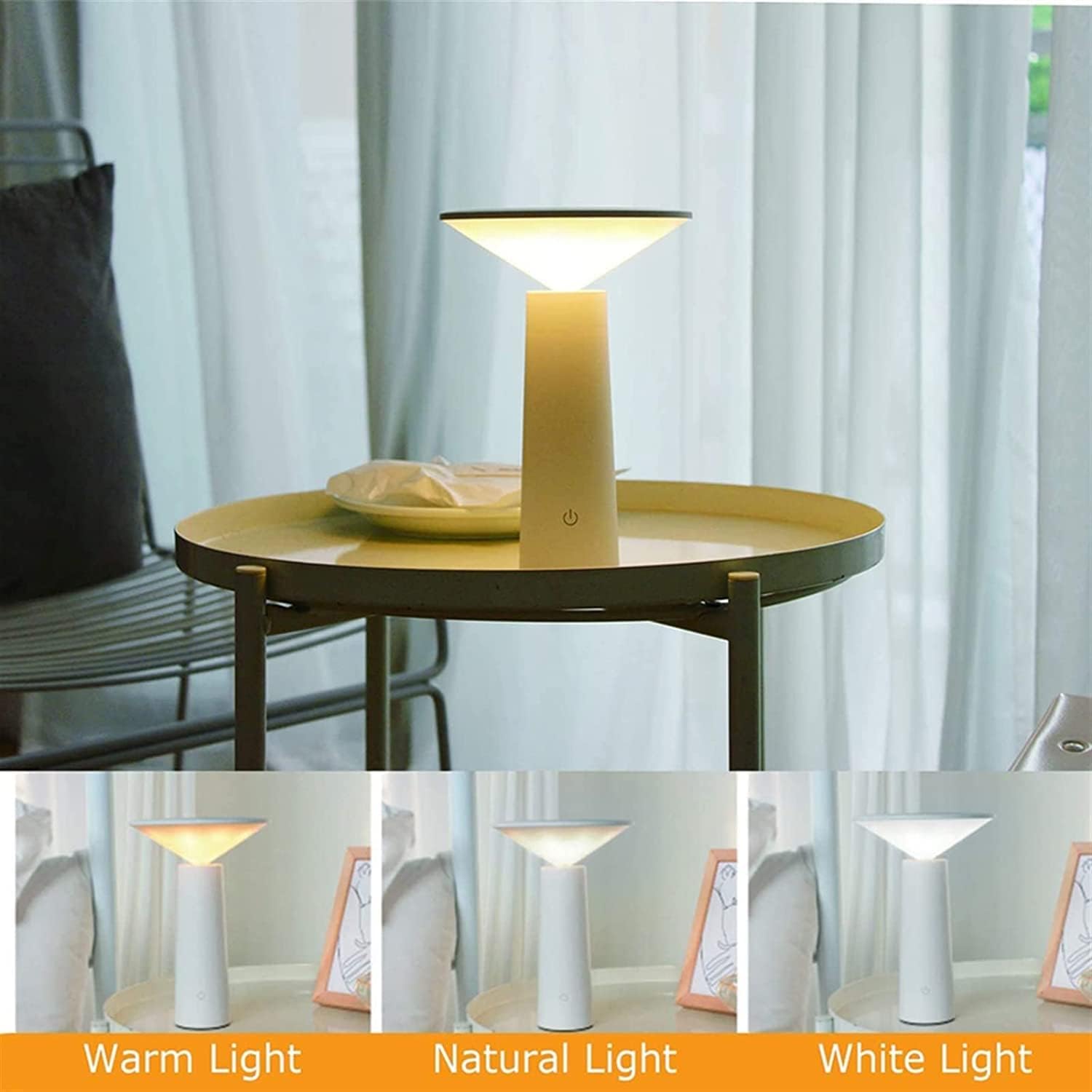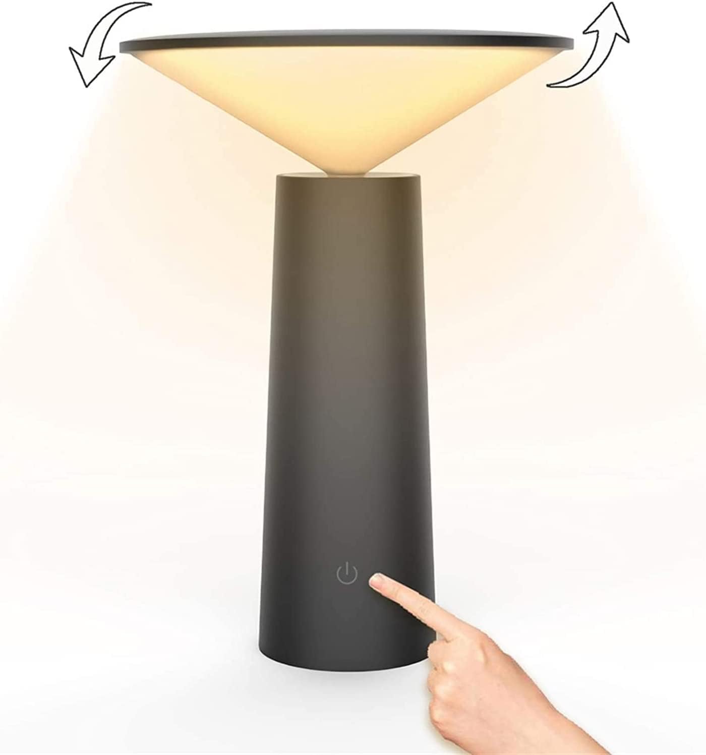 A modern cordless LED table lamp with warm 3000K light, touch dimming, and adjustable head perfect for cozy ambient lighting and stylish interiors.